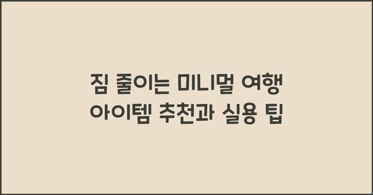 짐 줄이는 미니멀 여행 아이템 추천과 실용 팁