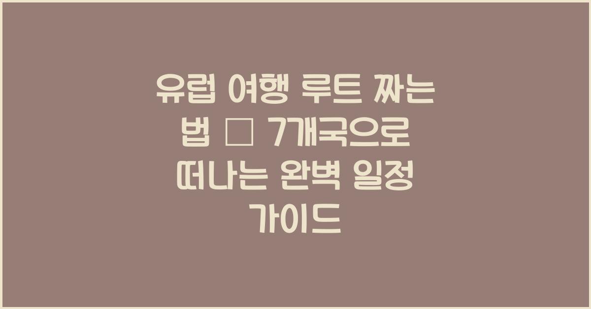 📌 유럽 여행 루트 짜는 법 – 7개국 효율적으로 도는 일정 공유유럽 여행은 언제나 설레는 경험입니다. 하지만 여러 나라를 효율적으로 돌아보려면 적절한 계획이 필수죠. 특히 7개국을 여행할 경우, 특정 도시의 매력을 최대한 즐기려면 루트를 잘 짜야 합니다. 그런 의미에서, 유럽 여행 루트 짜는 법 – 7개국 효율적으로 도는 일정 공유가 매우 유용합니다. 정보를 정리하다 보면, 내가 놓쳤던 도시의 매력을 다시 생각하게 되기도 합니다. 그러니 지금부터 함께 준비해볼까요?유럽 여행 루트 짜는 법 – 7개국 효율적으로 도는 일정 공유 더 알아보기🌍 여행 목적지 선정하기여행을 시작하기 전, 가장 먼저 해야 할 일은 여행하고 싶은 목적지를 정하는 것입니다. 유럽은 다양한 문화, 역사적 배경을 가진 나라들이 많아..