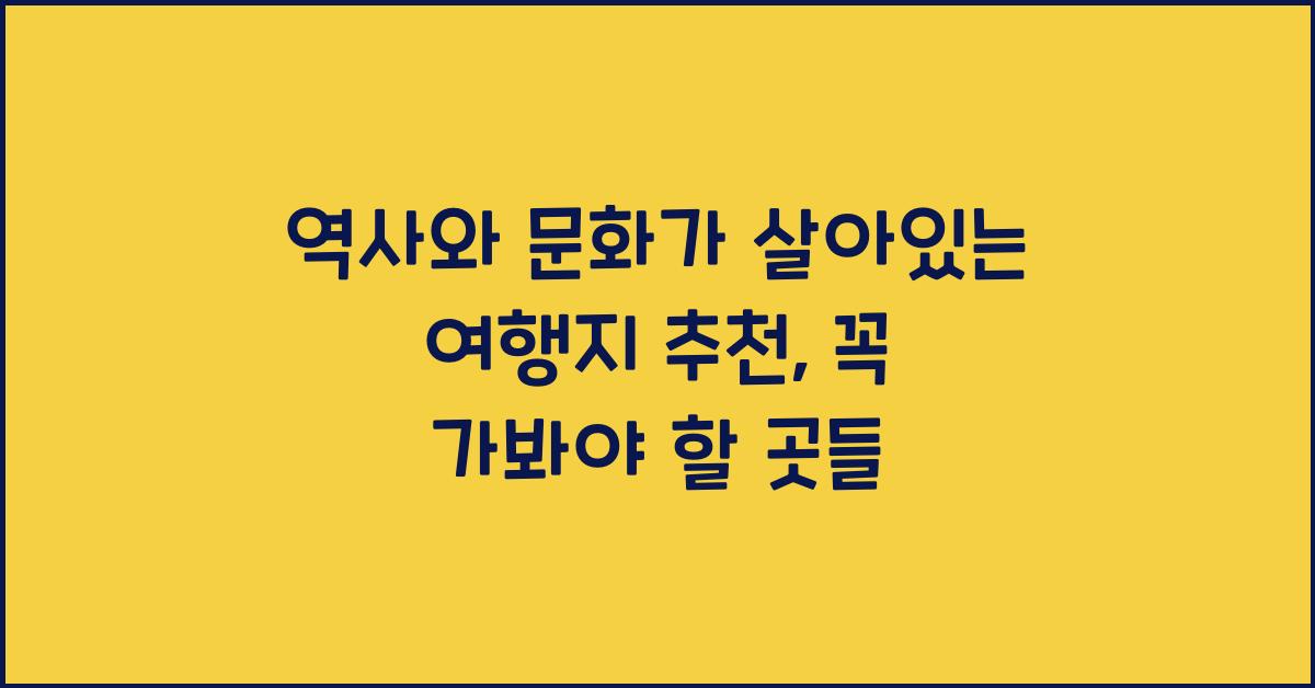 👣 역사와 문화가 살아있는 여행지 추천의 중요성여행을 떠날 때마다 우리는 단순한 관광지를 넘어서, 그곳의 역사와 문화를 느끼고 싶어 합니다. 역사와 문화가 살아있는 여행지 추천은 그 이유에서 비롯되는데요. 이러한 장소에서 우리는 과거의 흔적을 따라가고, 그곳의 사람들과 따뜻한 교감을 나누는 의미를 찾게 됩니다. 요즘은 특히 깊이 있는 체험이 더욱 중요해지고 있어, 여행자는 단순히 구경하는 데 그치지 않고 그 지역의 정서에 공감하고 싶어합니다.역사와 문화가 살아있는 여행지 추천 더 알아보기예를 들어, 프랑스의 파리는 단순한 관광명소가 아닌, 문화와 예술의 중심지로 알려져 있습니다. 에펠탑을 방문하는 것뿐만 아니라, 다양한 미술관과 극장에서 느끼는 감정이 여행의 또 다른 매력으로 다가옵니다. 이런 의미에서..
